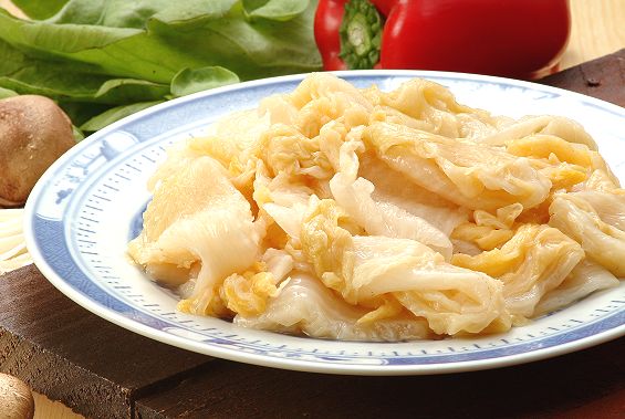色 在醃漬過程中如能保持衛生,不受雜菌干擾,不添加人工色素等,其色澤因維持原色,白菜梗子部分為銀白色、葉子部分略近金黃色,堪稱為優質的東北酸白菜最佳色澤。